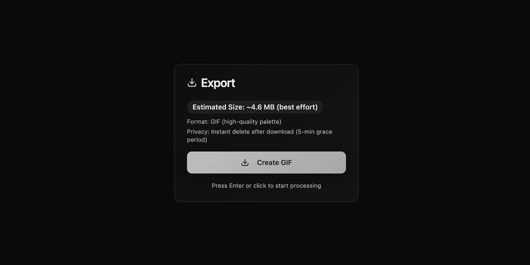 I don't have space to build a cloud and then store stuff. There was just no use for me to store video GIF or raw files. So I built it to delete everything the moment you download your GIF. No accounts, no history, no hidden folders, just upload, convert, download, and gone.