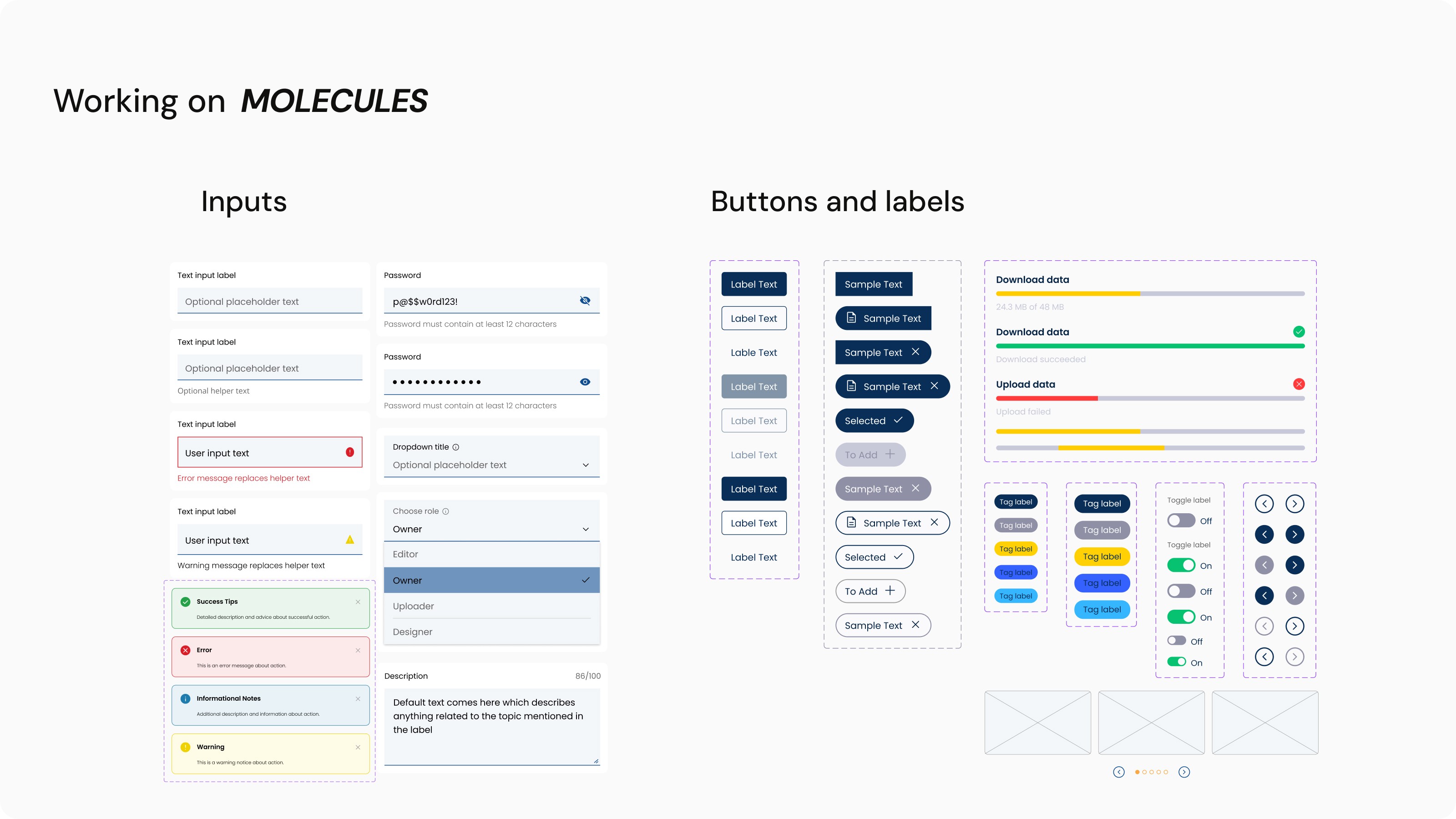 - Reusable molecules: Consistent inputs, navs, and form elements