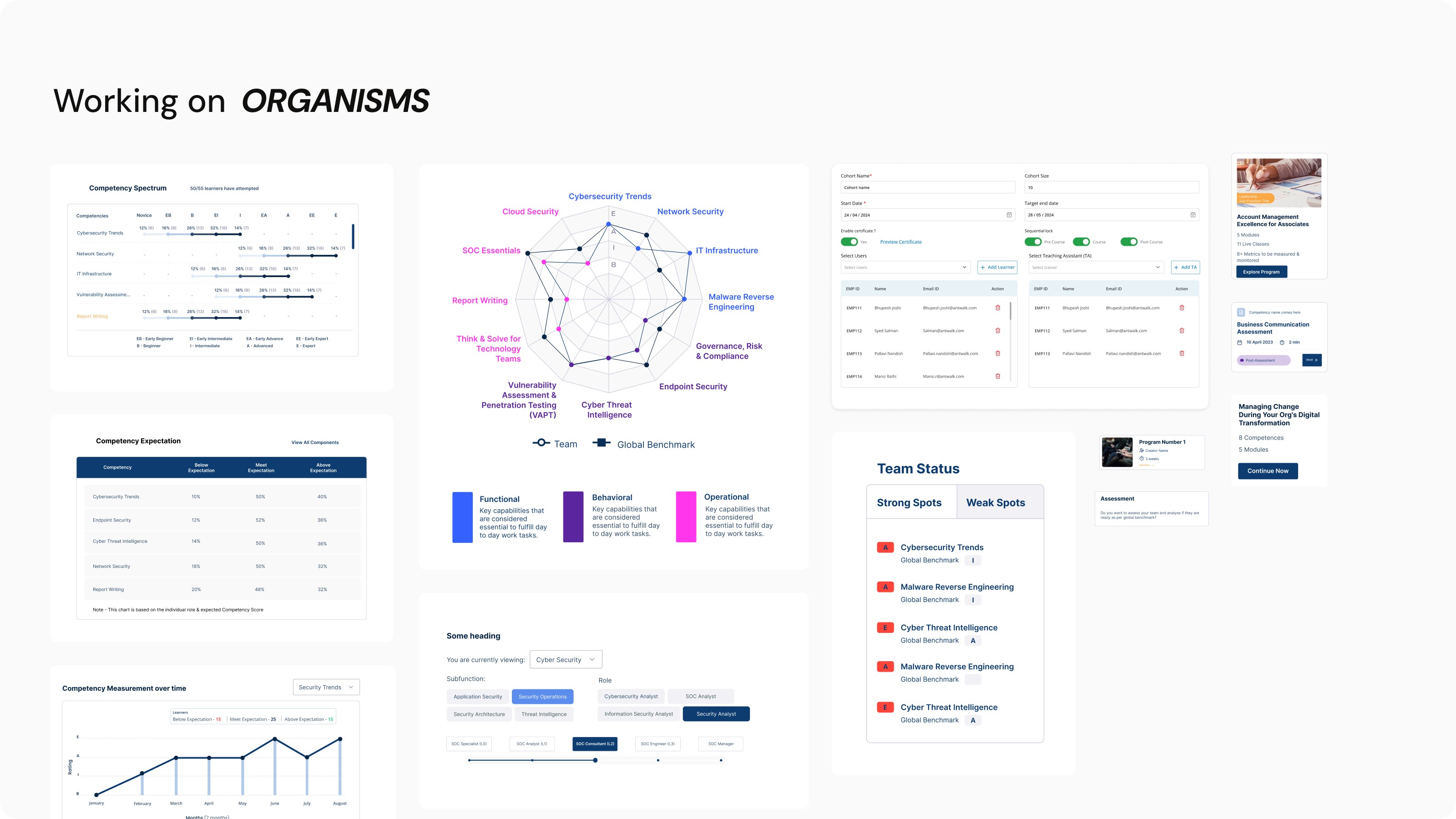 Designing for admins, managers, and learners meant supporting very different workflows without forking patterns. The system had to lower cognitive load and scale across roles while protecting release velocity. Documentation and governance were as critical as UI polish.