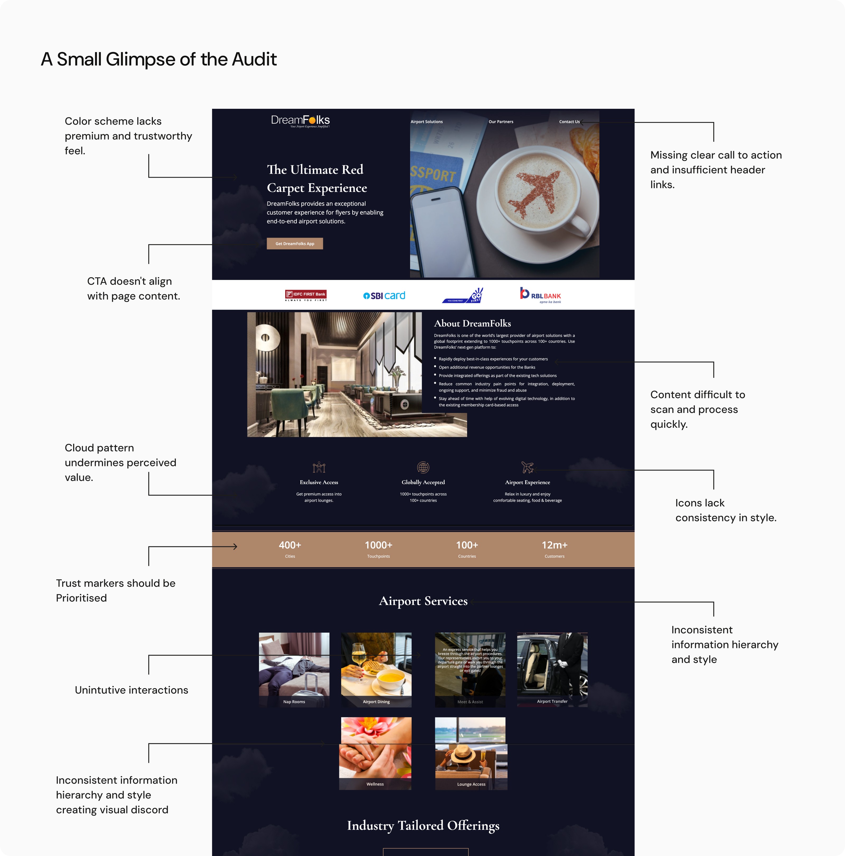 Dreamfolks is India’s largest airport hospitality aggregator, with a 90% market share and services spanning 140+ countries. For their global B2C launch, the website wasn’t a marketing asset, it was the stage. A two-week deadline meant scope and execution had to be ruthless and precise.