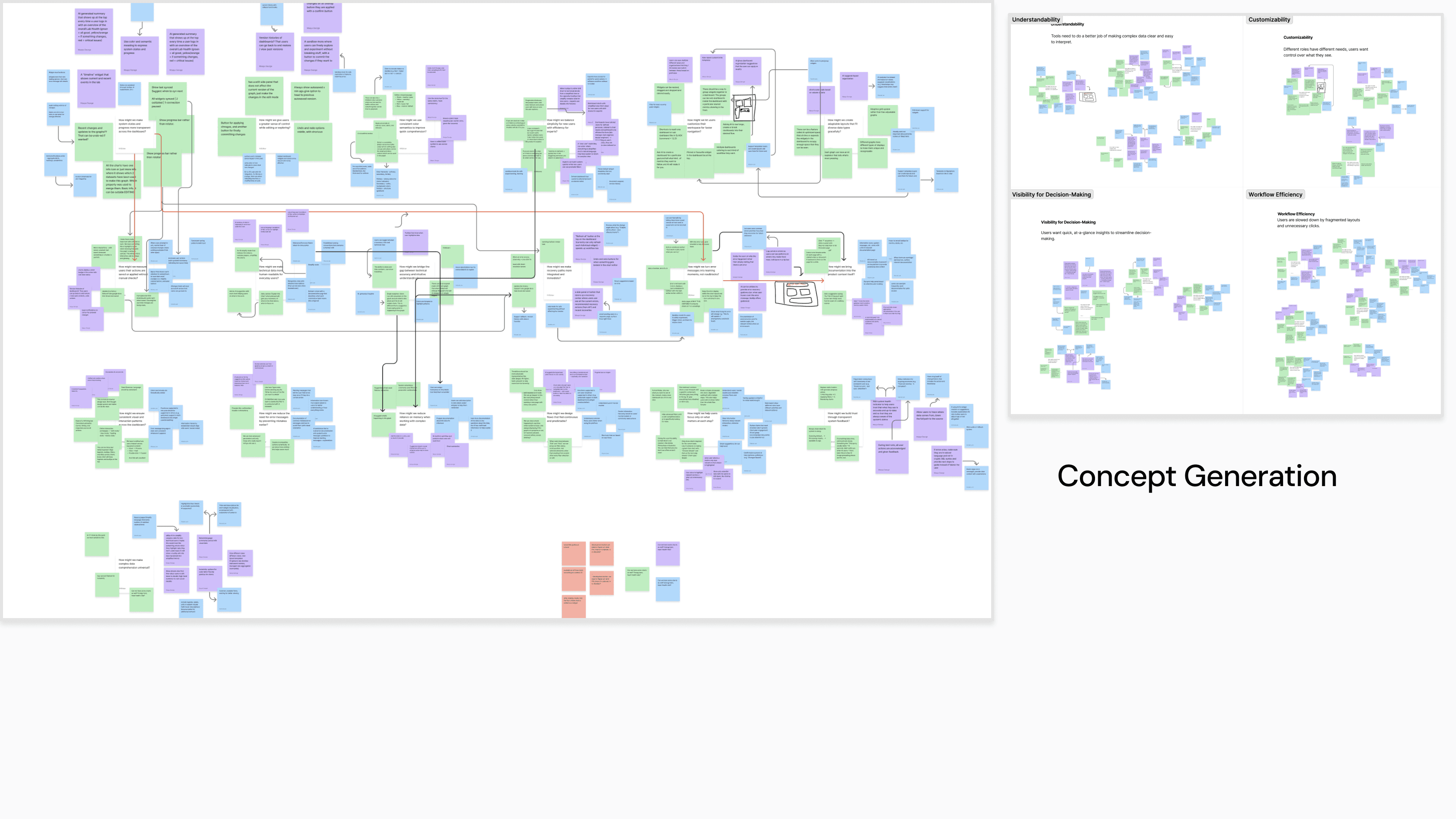 We clustered ideas around the four themes to avoid designing isolated features. Ideation sessions focused on how improvements could work together across workflows. This helped us move from scattered ideas to cohesive system-level concepts.