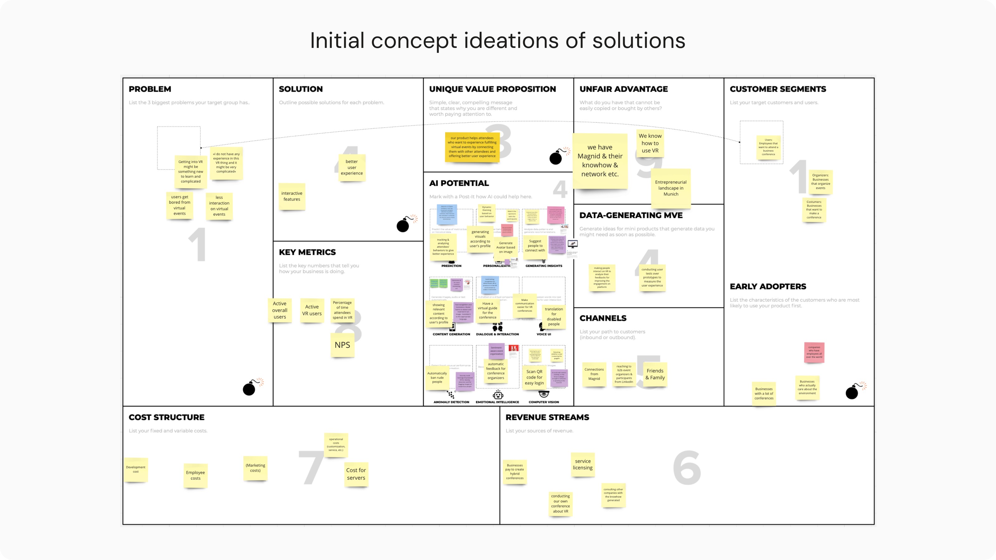 Magnid, a corporate event platform, was pivoting into VR, but early testing revealed a steep drop-off. First-time attendees felt disoriented, overwhelmed, and disconnected, often quitting before they experienced the features. As one of 8 designers selected globally for UnternehmerTUM’s Digital Product School, I led the redesign of Magnid’s VR onboarding to make the experience more intuitive and reduce churn from the very first session.